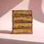 Состав: сахар, какао-масло, сухое цельное молоко, какао тёртое, эмульгатор: соевый лецитин, краситель: золотой кандурин; начинка: кадаифская лапша (мука пшеничная высшего сорта, крахмал кукурузный, масло подсолнечное рафинированное, соль, консервант: собрат калия, эмульгатор: соевый лецитин), фисташка тёртая, сахар, соль, краситель натуральный хлорофилл.